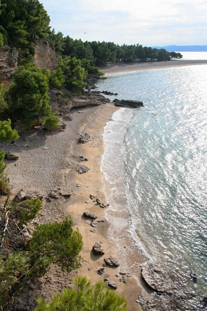 Już sama droga do plaży to wyjątkowe doświadczenie – prowadzi przez las Osejava, który łączy Makarską z Tučepi. Ze względu na nierówny teren i fakt, że dojście na plażę zajmuje około 30 minut pieszo, zalecamy unikać klapek czy sandałów i założyć buty sportowe.